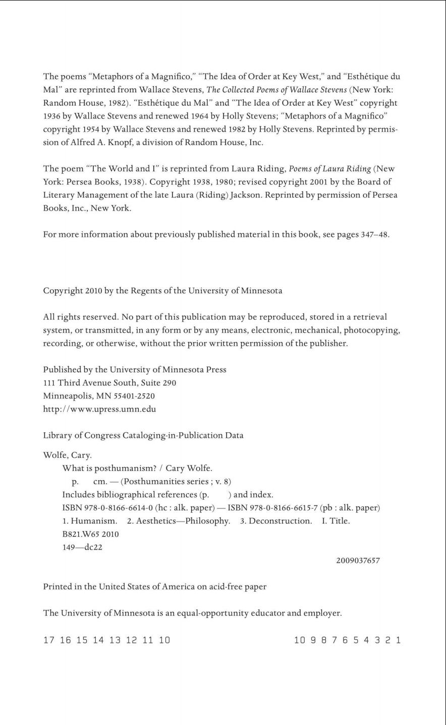 明尼斯达大学传说的posthumanities系列一共46册,这套书代表后人学研究最前沿的领域,包括后人学研究的经典著作,也包括了最新的研究