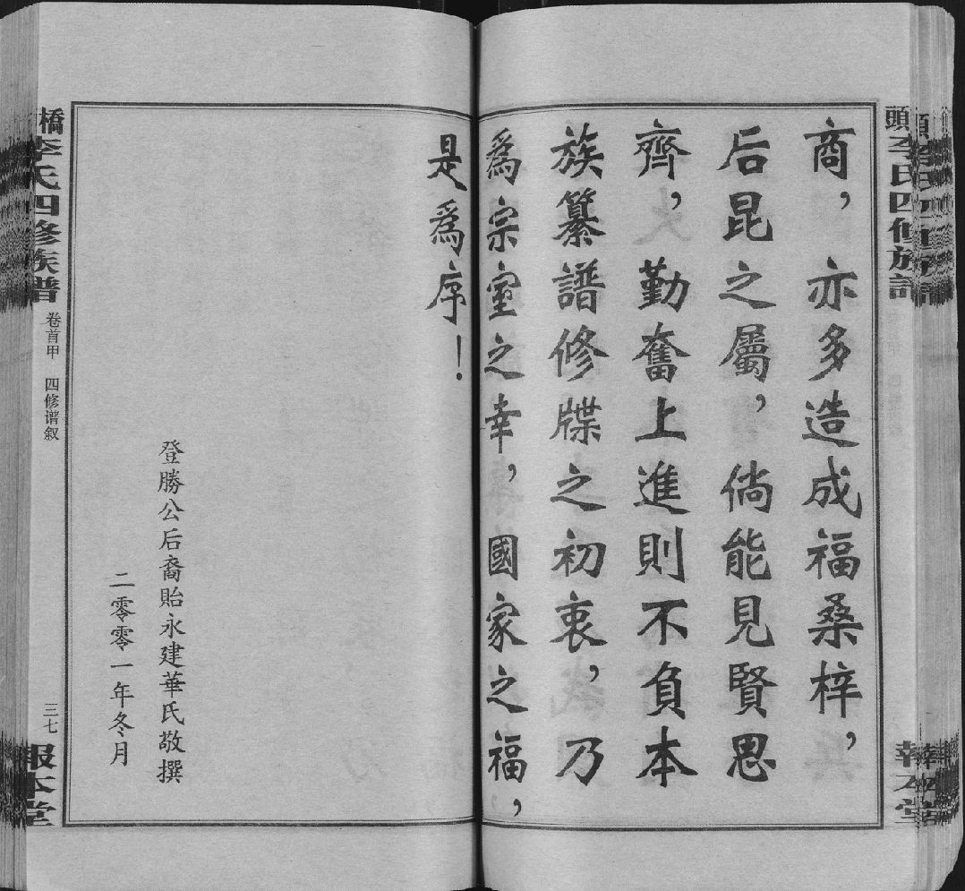 001桥头李氏四修族谱, 1, 卷首甲_ 谱叙 卷首目录 班行 概述 凡例 执事名录 领谱字号 捐款芳名 宗规 年代对照表 旧谱叙 旧凡例 旧执事录, 2001.zip 157.37 MB