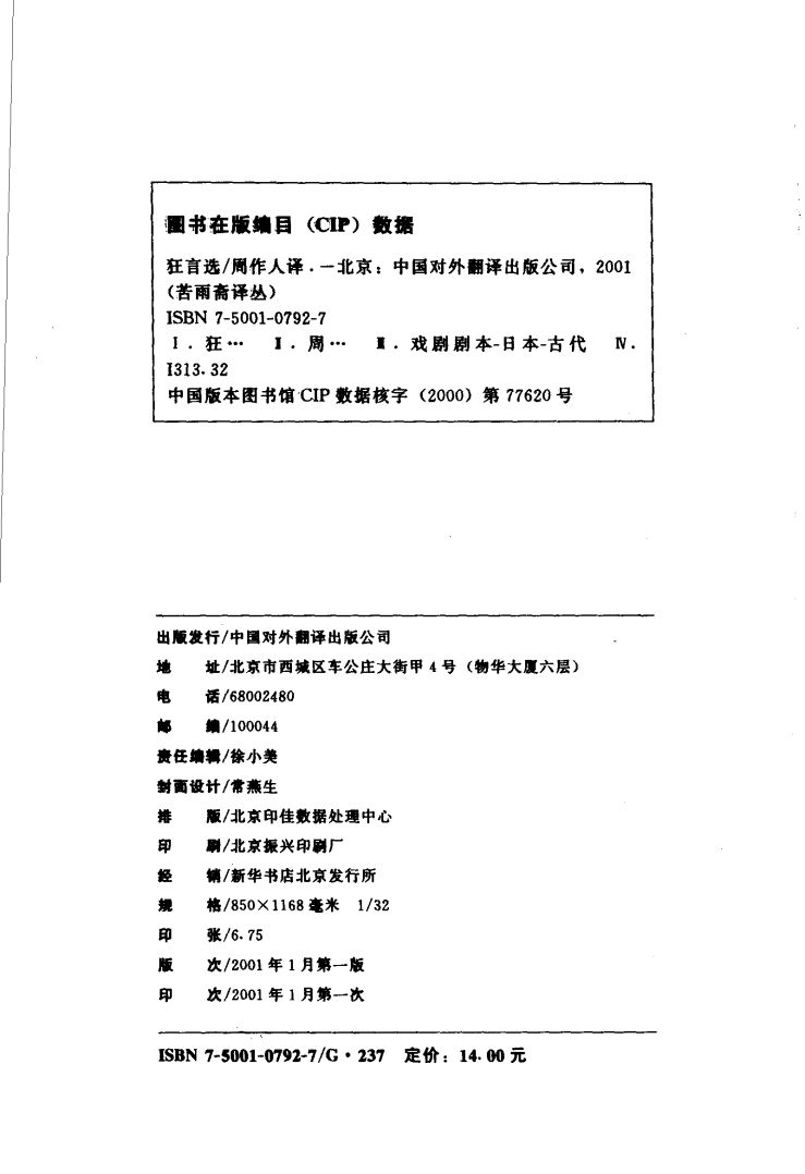 │[苦雨斋译丛]狂言选.周作人译.中国对外翻译出版公司(2001).pdf 4.71 MB