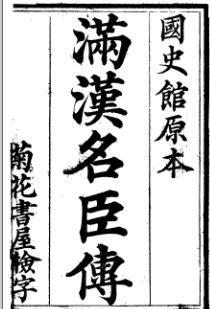 《满汉名臣传》一书又名《满汉大臣列传》《国史列传》《满州名臣传》,是一部传纪类史书,它收录了自天命元年至嘉庆初年以满汉大臣为主的人物列传,其中也有蒙古族等少数民族大臣的人物列传,下面分别加以论述。 一、《满汉名臣传》一书的作者及其版本源流 《满汉名臣传》一书的作者究竟是何人?根据一些资料证明,笔者认为是清国史馆编撰.首先,该书的书名页或书口都标有“国史馆撰”的字样,清代大臣李桓编纂的《国朝替献类征》一书卷首“述意”一文详细阐明了此书的部分史料来源,在阐述书中国史列传部分时写道:“本人有国史馆本传者均将史传首列,次及诸家文字,唯史馆故事止准史官就馆抄录,不得将原本携归私寓。先文恭公,先编修兄叠,直史馆均不过二三年,就抄无多,嗣属在馆戚友续抄,仍属无几,是以应有史传而闹载者甚多”。